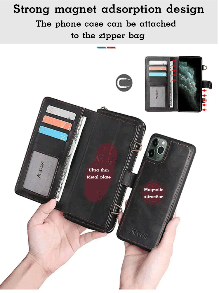 Upgraded wallet all-in-one iPhone case Use high-quality materials Small, portable and powerful Detachable design Zipper pocket can be used alone Practicality (strong)